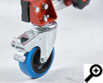 Ausgestattet mit vier Lenkrollen, davon zwei mit Bremsen.